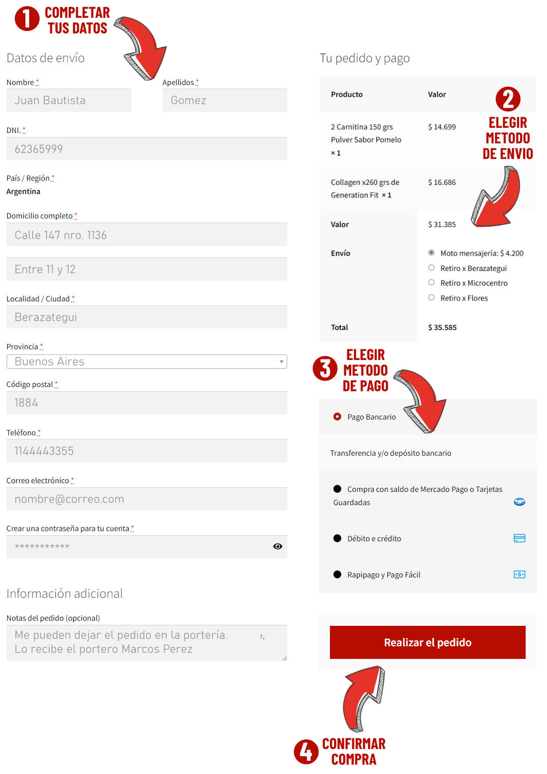 Completar los datos envío y elegir el método de pago