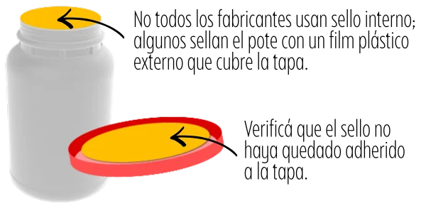 En algunos casos, el sello interno puede quedar adherido a la tapa al momento de abrir el producto. Por eso, es importante verificar si el sello está presente o si quedó en la tapa al retirarla, lo cual es normal en ciertos envases.