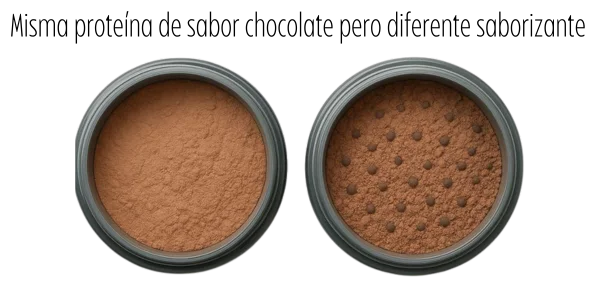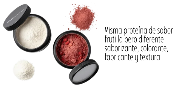 Muchas proteínas sabor frutilla incluyen pequeñas partículas rojizas que simulan la apariencia de un licuado natural, mientras que otras no las tienen. Esto depende del tipo de saborizante o colorante que utiliza cada laboratorio.