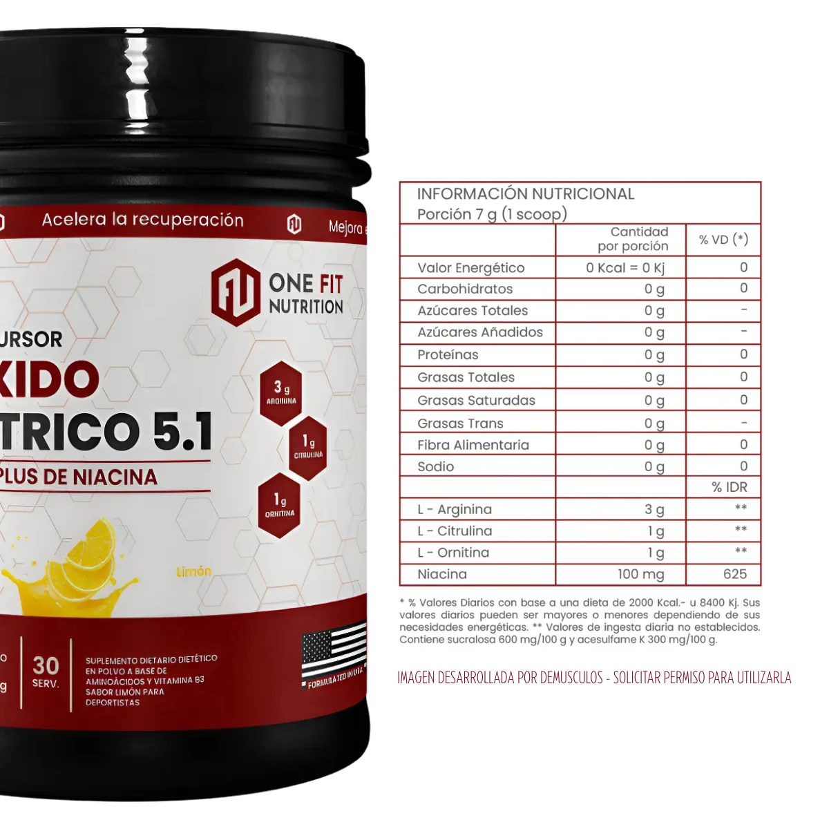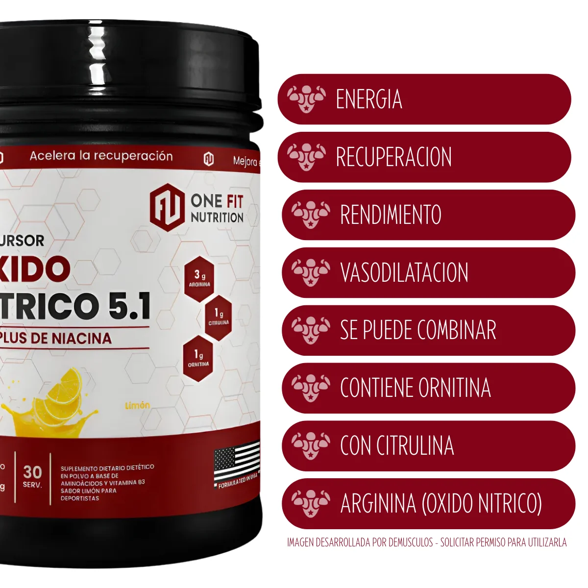 El Óxido Nítrico One Fit es un suplemento en polvo formulado con arginina, citrulina y ornitina, pensado para mejorar el rendimiento físico de forma natural. Su acción principal es favorecer la vasodilatación, lo que permite un mejor flujo sanguíneo hacia los músculos durante el entrenamiento.